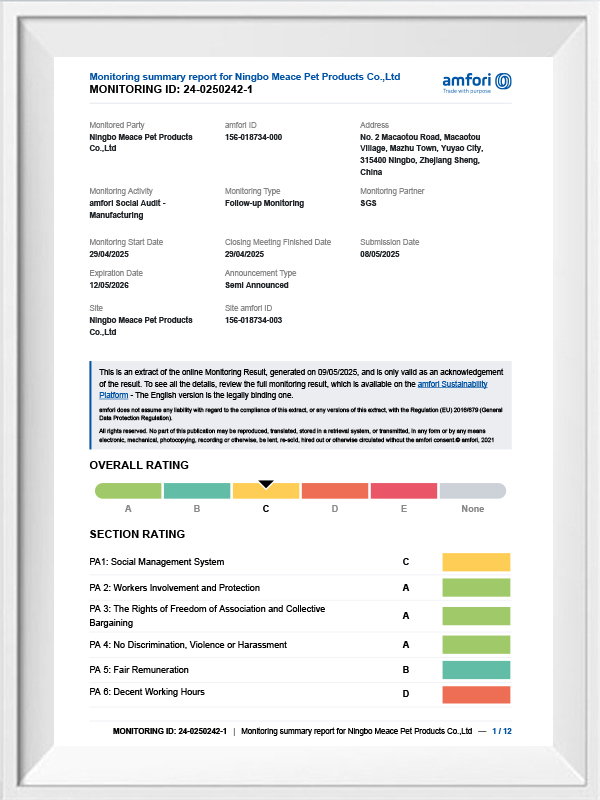 La sécurité alimentaire est la bouée de sauvetage de Produits pour animaux de compagnie Cie., Ltd de Ningbo Meace.