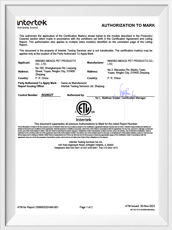 Grâce à l'atelier d'injection en propre de Produits pour animaux de compagnie Cie., Ltd de Ningbo Meace. , les pièces sont bien ajustées mais faciles à retirer.