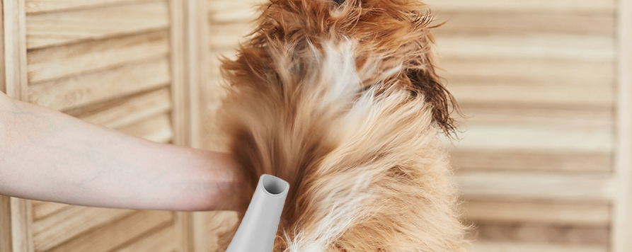 Brossez et soufflez dans le sens inverse de la fourrure pour gonfler les poils, enlever la fourrure lâche, rendre la fourrure douce et simplifier le coiffage.
